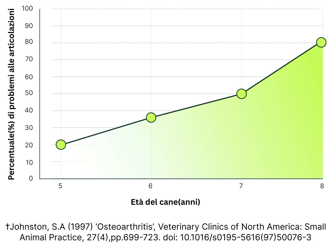 Molti cani iniziano ad avere dolore alle articolazioni già dai 5 anni. Quando arrivano a 8 anni, 8 cani su 10 soffrono.
